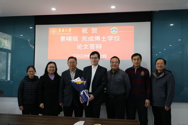 2026年3月7日上午9:00,先进功能材料课题组(Advanced Functional Materials Group,AFMG)景暘珉同学的博士学位论文答辩会在东华大学(松江校区)材料学院楼C315如期举行。先进功能材料课题组邀请了来自上海人工智能研究院、上海交通大学、东华大学的专家作为此次答辩委员会委员,课题组内部分博士、硕士研究生旁听了此次答辩会。