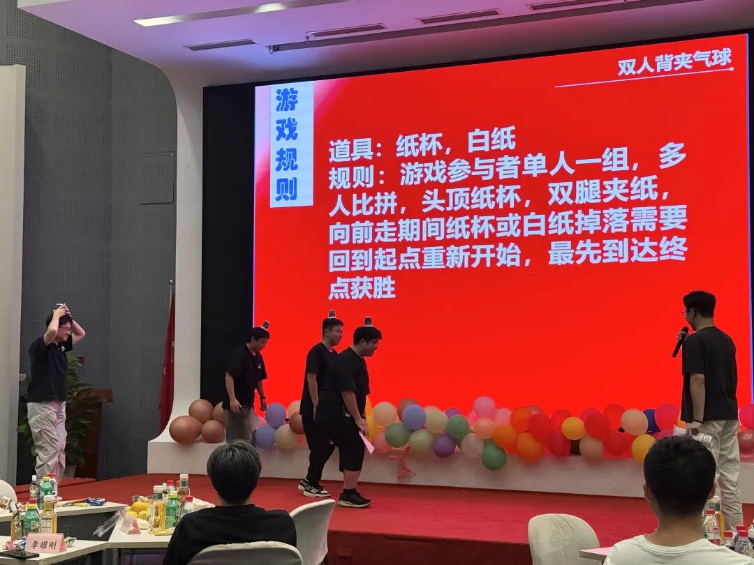 互动游戏环节更是将晚会氛围推向高潮。同学们积极踊跃地参与,在游戏中相互协作、尽情欢笑,现场欢笑声、喝彩声、加油声交织在一起,汇成一片欢乐的海洋;喻世全、罗滨洋带来歌曲《我们俩》,温柔的歌声中满是对彼此陪伴的珍视;许坤、李明泉带来小品《太性情了》,夸张的表演、诙谐的台词,将生活中的趣事演绎得妙趣横生,让大家在捧腹大笑之余,也感受到了课题组轻松愉快的氛围。